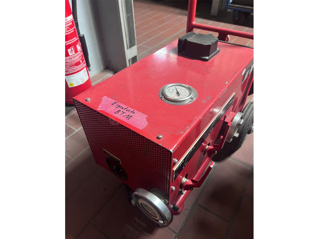 Profesjonalna pompa do przeprowadzania prób ciśnieniowych węży hydrantowych. Urządzenie umożliwia precyzyjne generowanie i regulację ciśnienia roboczego do 60 bar.